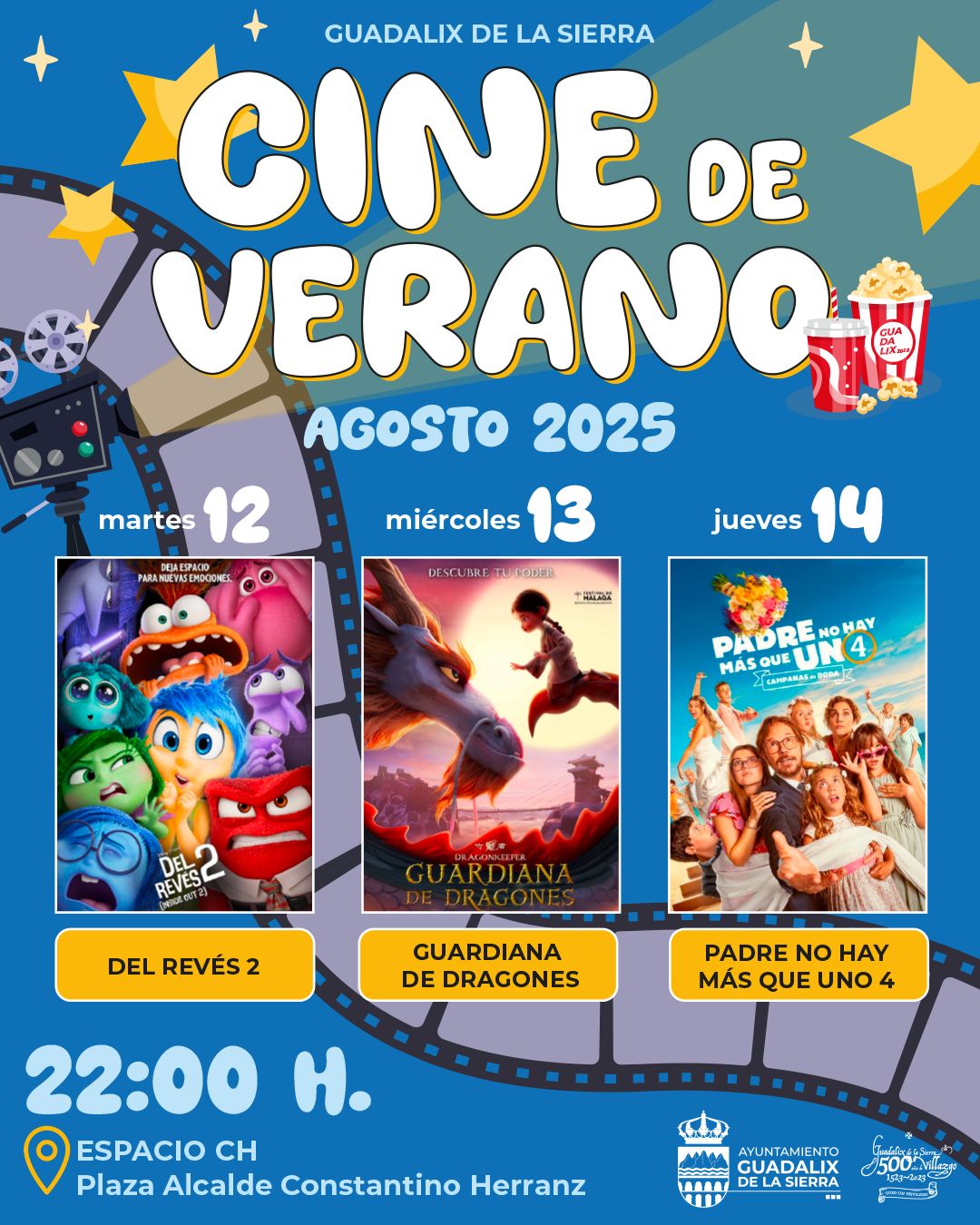 🎬Espacio Plaza Alcalde Constantino Herranz🕙 22:00 horas.🍿Tres noches para disfrutar en familia y con amigos: