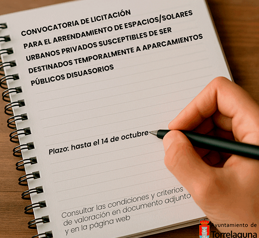 Más información en el siguiente enlace: https://torrelaguna.es/convocatoria-arrendamiento-de-solares-para-aparcamientos-disuasorios-en-torrelaguna/